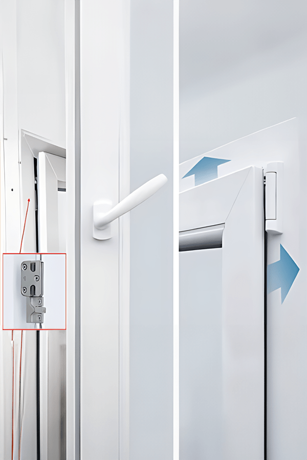 As ferragens e as dobradiças, que permitem a total eficácia nos processos de abertura e fecho, para um desempenho de excelência no bloqueio de ruídos e consequentemente aumenta a impermiabilidade e isolamento.